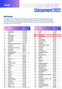Chaque année KPMG et NUMEUM présentent les résultats de leur étude Grand Angle, qui dresse un tableau sur la vitalité et les tendances des entreprises du numérique. Cette étude est complétée par leur classement des entreprises de services numérique (ESN) et de l’ingénierie et du conseil en technologies (ICT). Dans ce classement effectué sur la base du chiffre d’affaires effectué en France, AntemetA se classe à la 44ème place en 2022. Bravo à toutes les équipes d’AntemetA pour leur engagement !